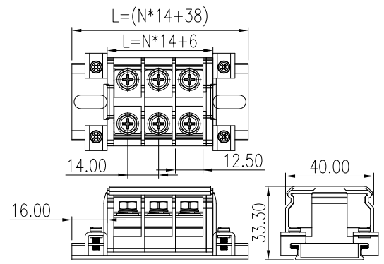 • Pitch:14.0mm,Electrical:UL,Rated Voltage:300V,Rated Current:60A,colour:black ;