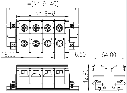 • Pitch:19.0mm,Electrical:UL,Rated Voltage:600V,Rated Current:100A,colour:black ;