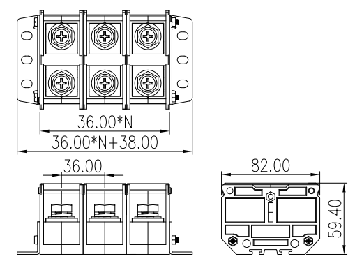 • Pitch:36.0mm,Electrical:UL,Rated Voltage:600V,Rated Current:230A,colour:black ;